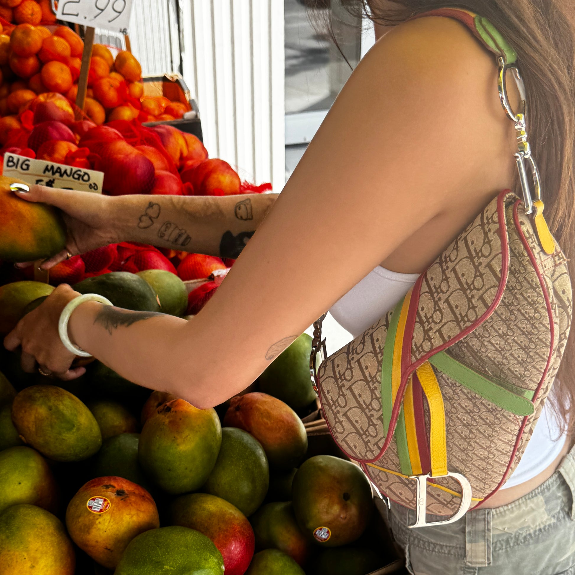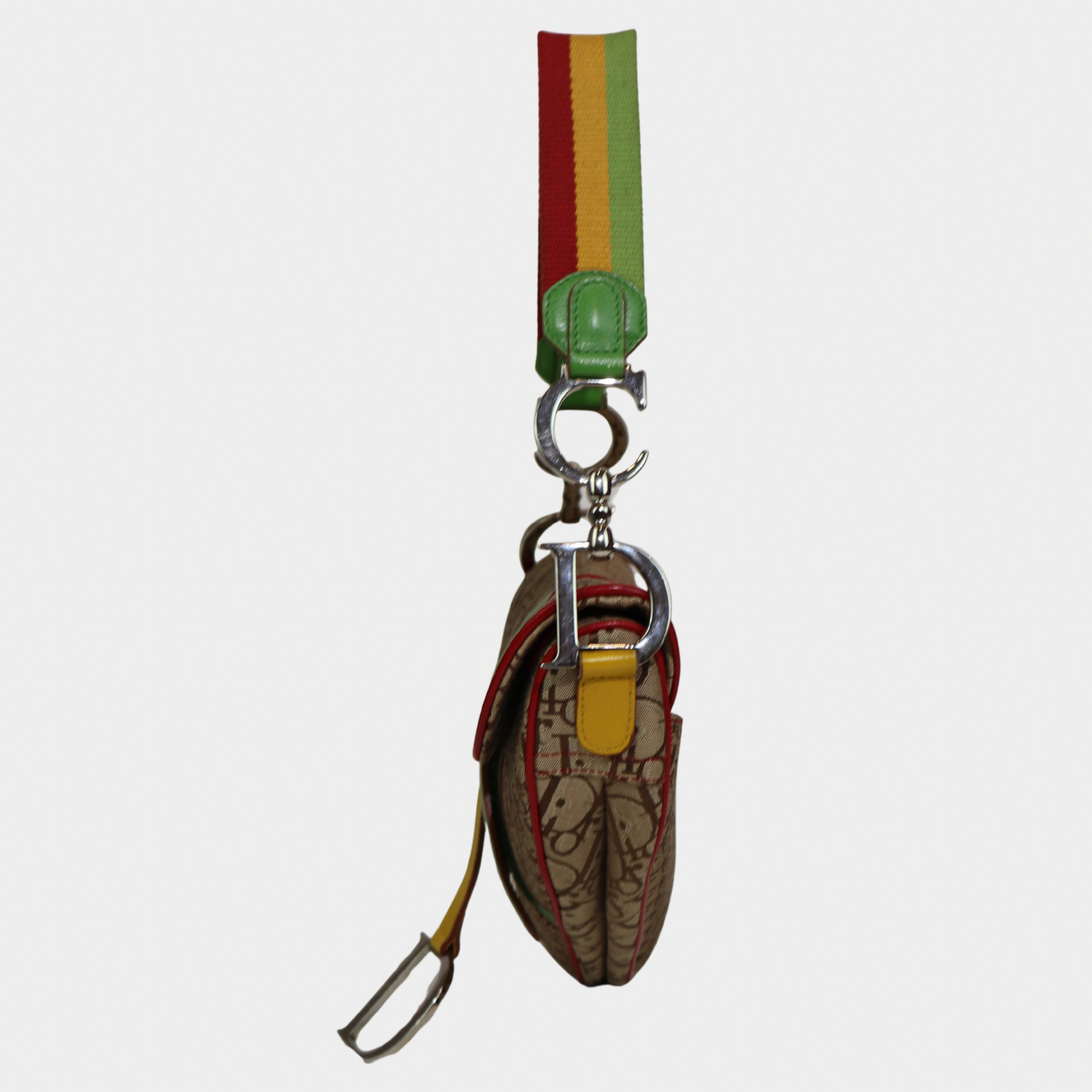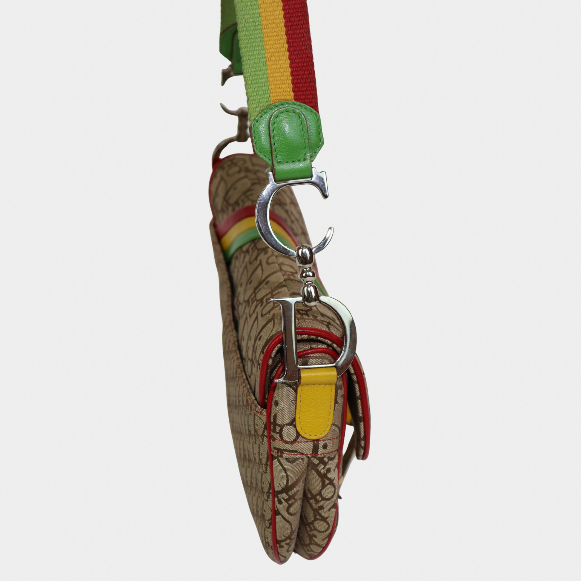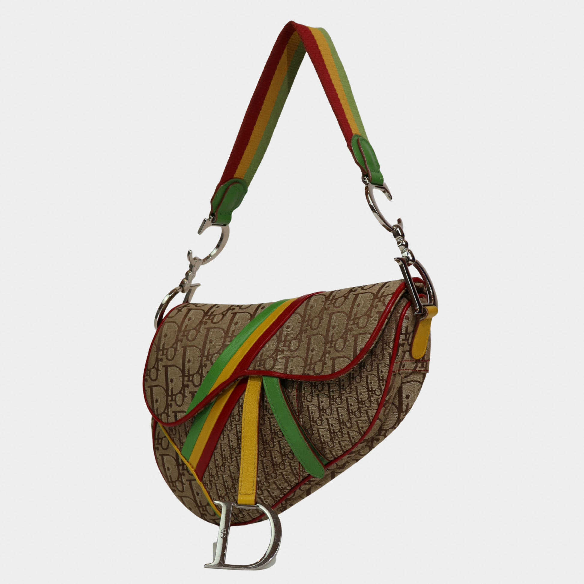 A rare find for the collector. Vintage Christian Dior Rasta Saddle Bag from the 2004 John Galliano collection is an unforgettable piece of fashion history. The bold, iconic design features a neutral-toned canvas with the signature Rasta colourway and silver-tone hardware. It includes a single shoulder strap and a handy interior pocket, making it a stylish and practical choice for daily essentials. A quintessential piece that perfectly captures the spirit of early 2000s charm.