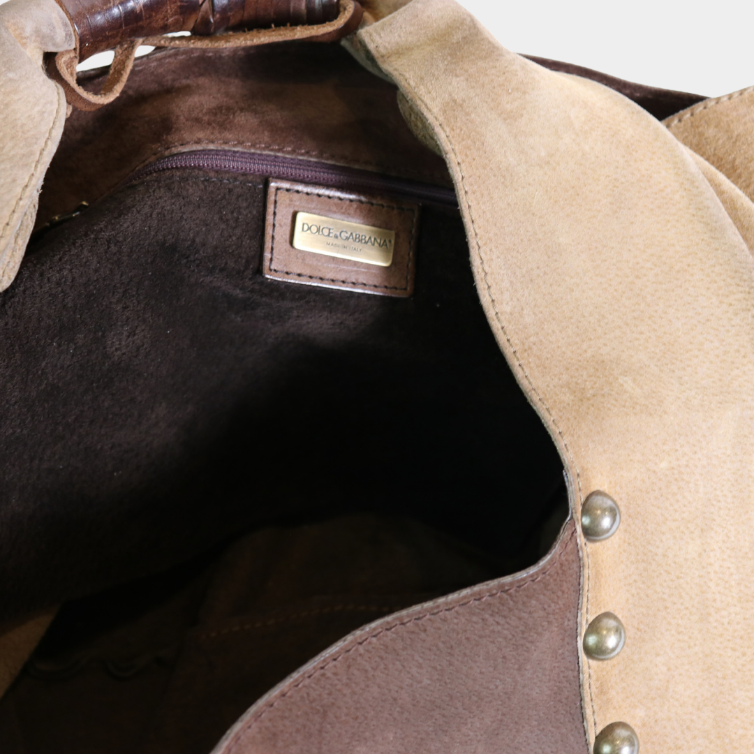 Dolce & Gabbana Suede Studded Hobo Bag
