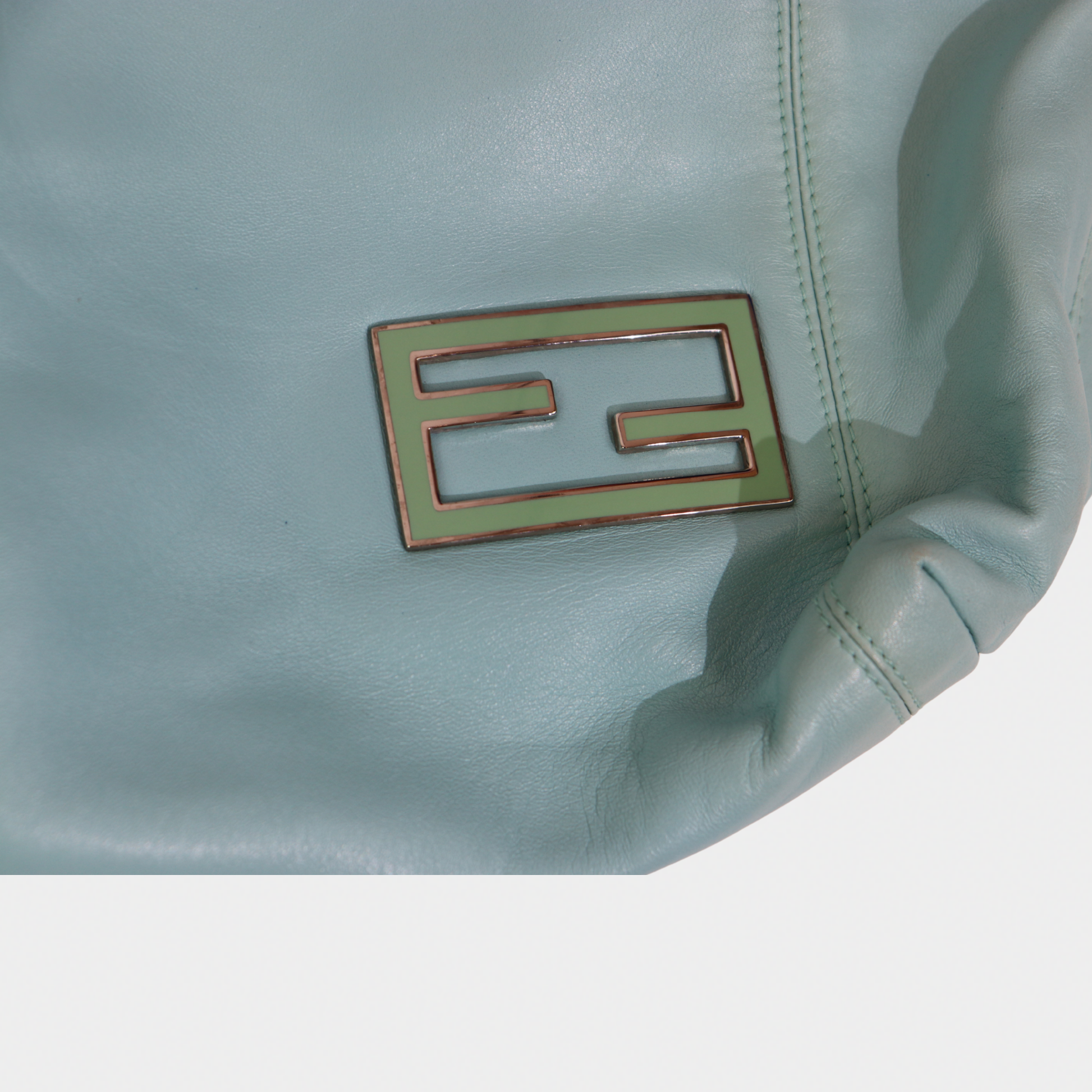 The perfect balance of laid-back and elevated. This vintage Fendi shoulder bag is a soft, slouchy masterpiece from the early 2000s. It’s crafted from plush nappa lambskin in a rare Tiffany blue and features sleek silver-tone hardware with the signature FF buckle. A lux satin interior lining with one zip pocket makes it an effortless and chic everyday bag.