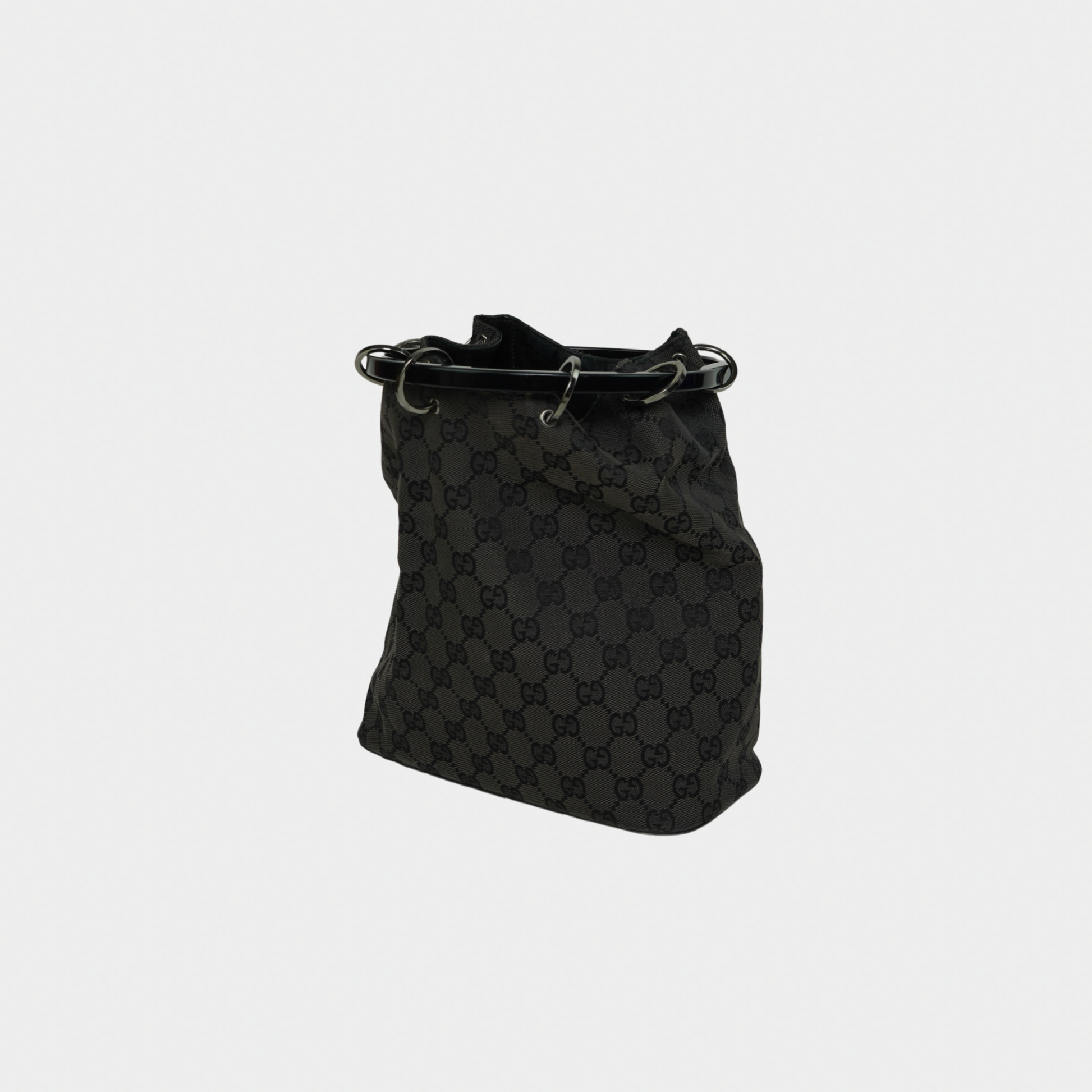 Gucci F/W 1999 Tom Ford Black Hoop Handle Canvas Monogram Bucket Bag