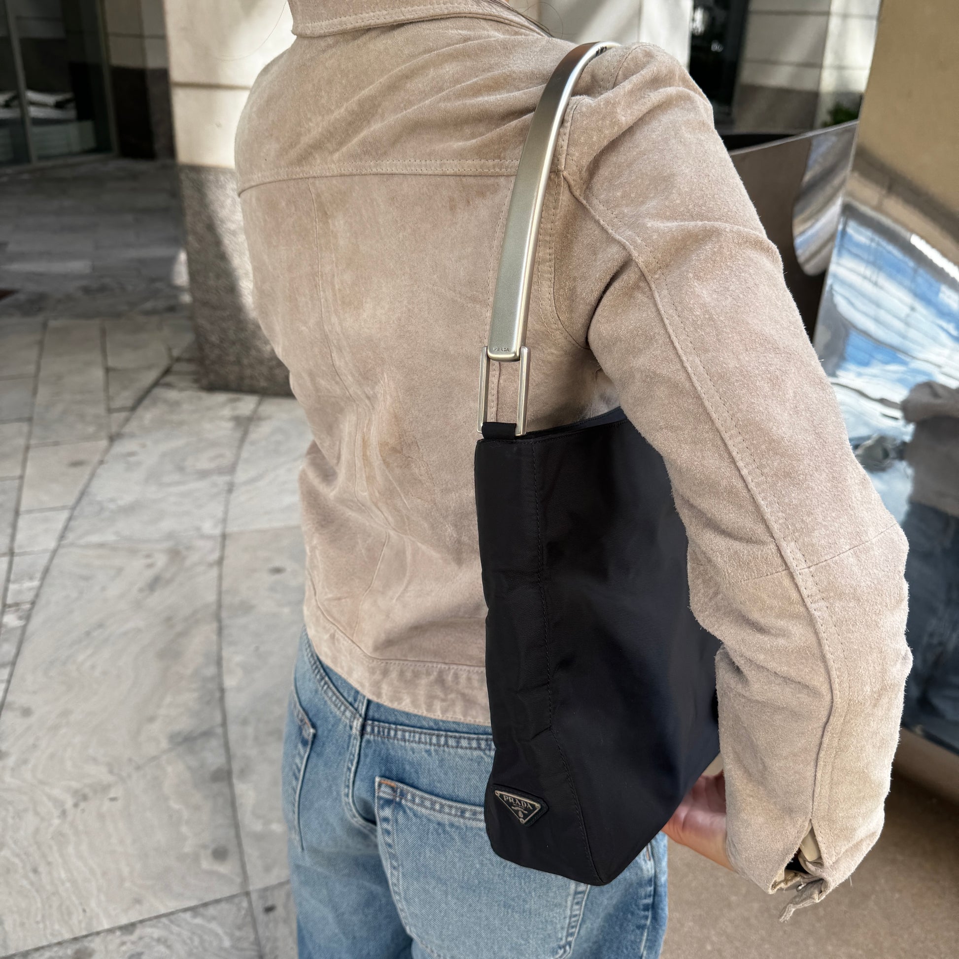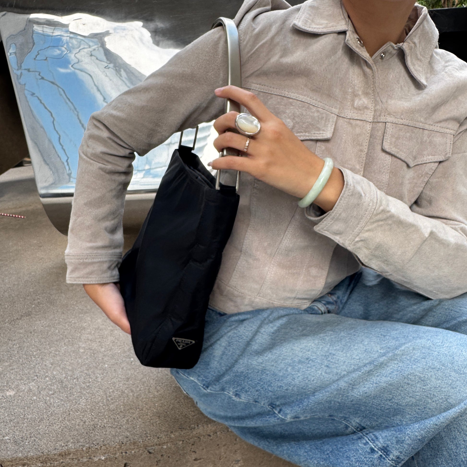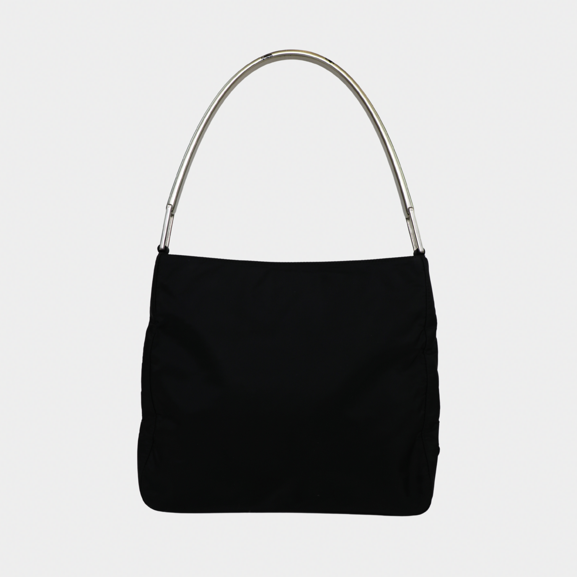 Prada Nylon Silver Acrylic Strap Shoulder Bag
